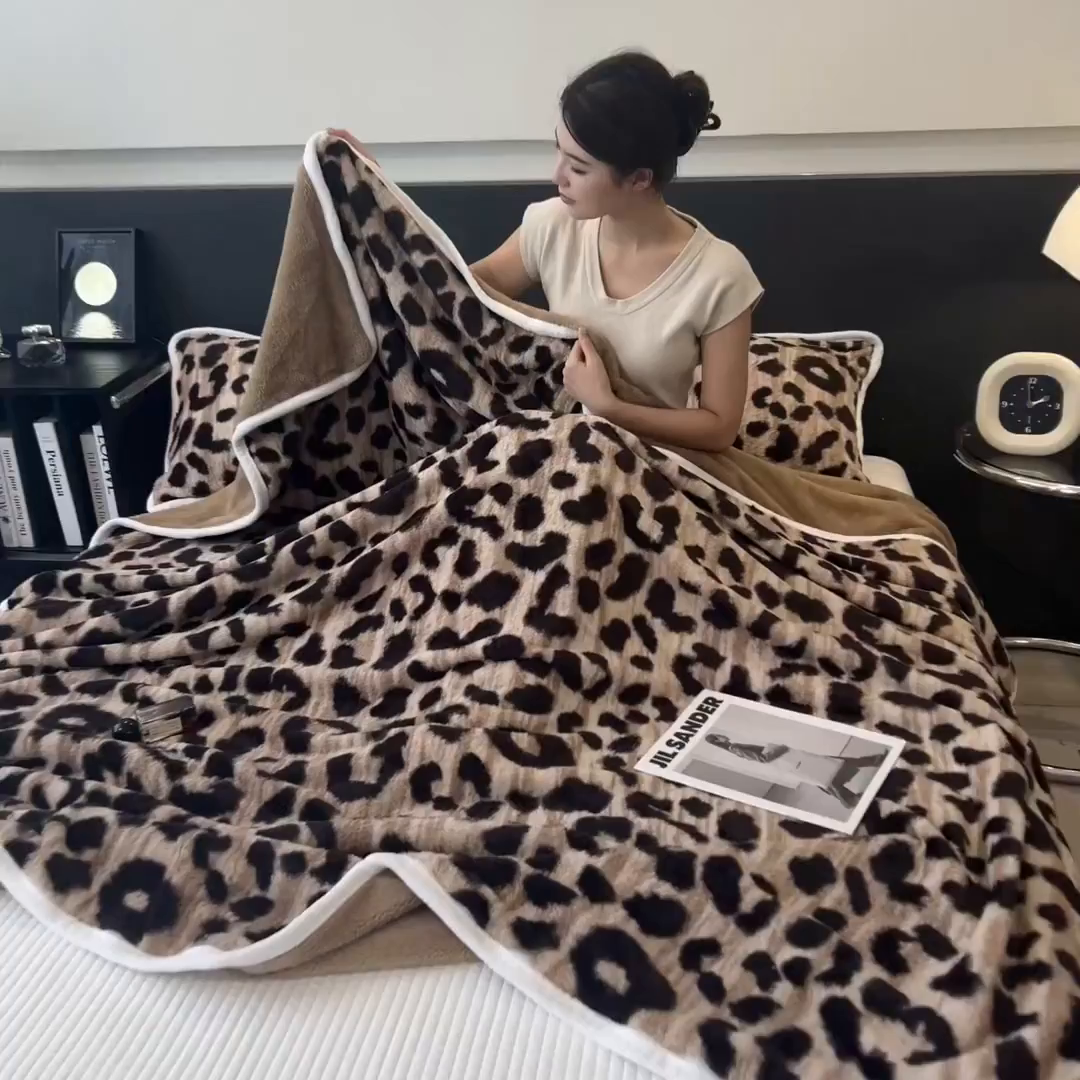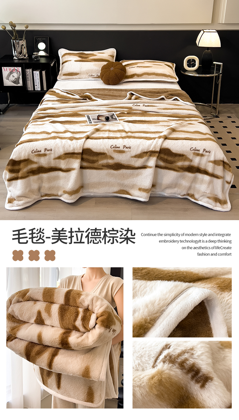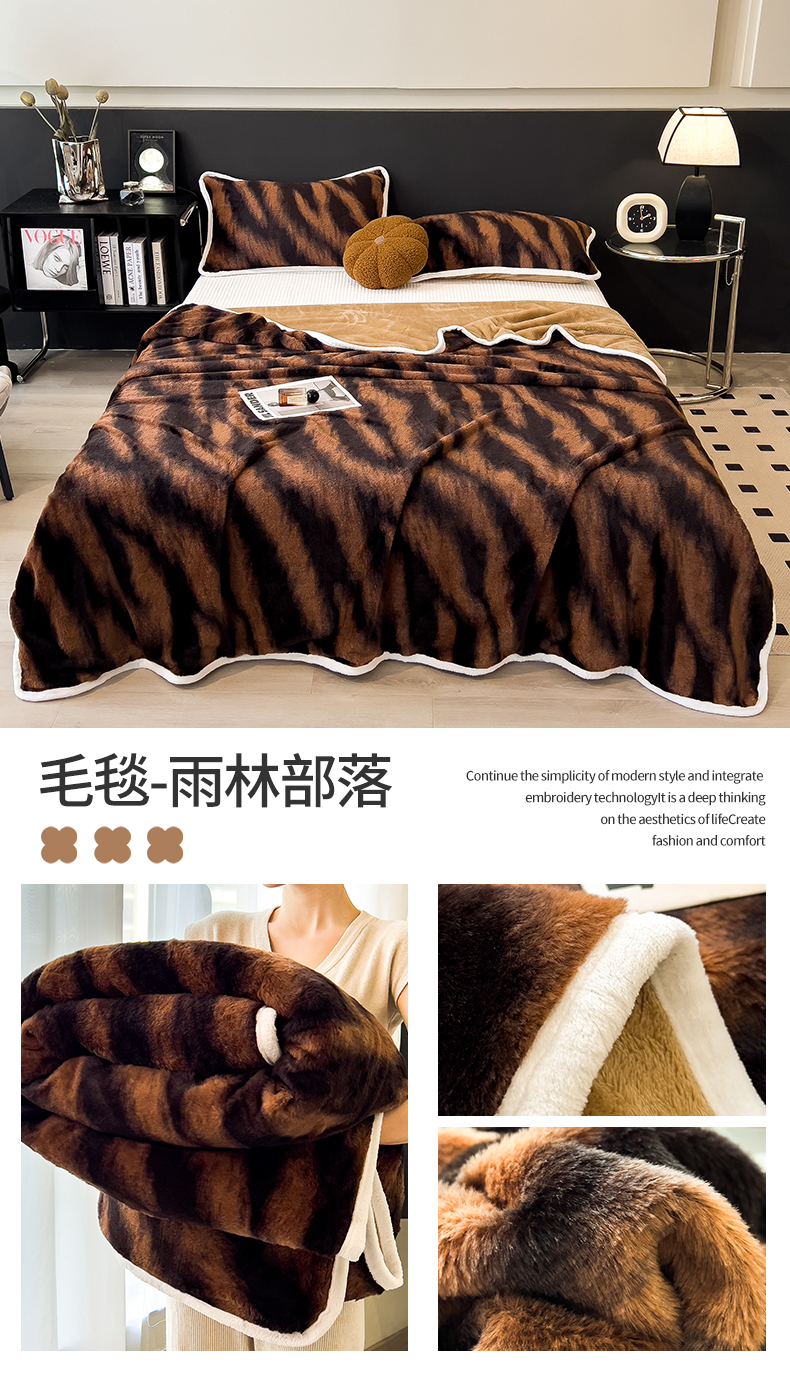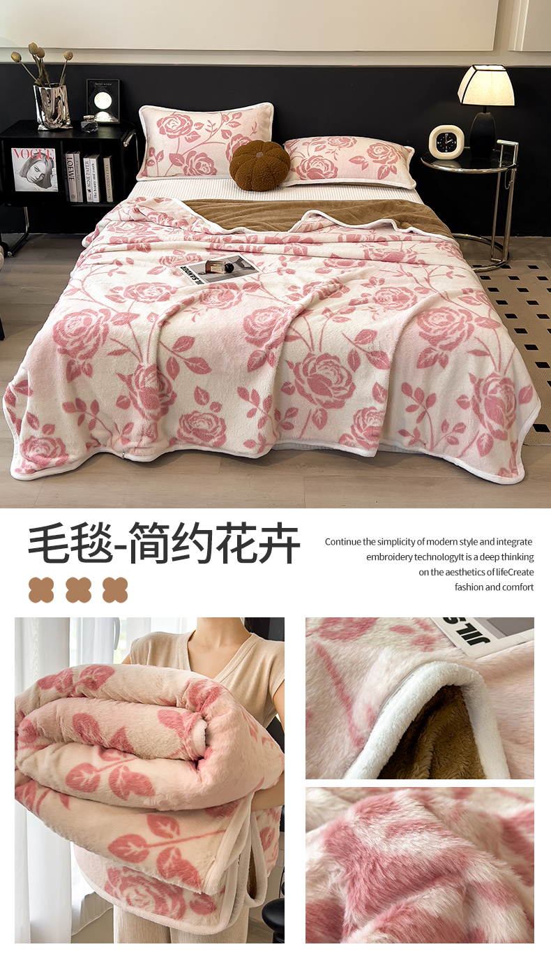 - - 2024新款a类双面兔毛印花毛毯 午睡毯 盖毯