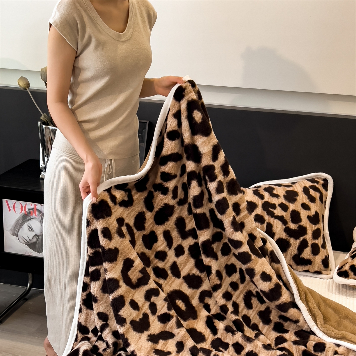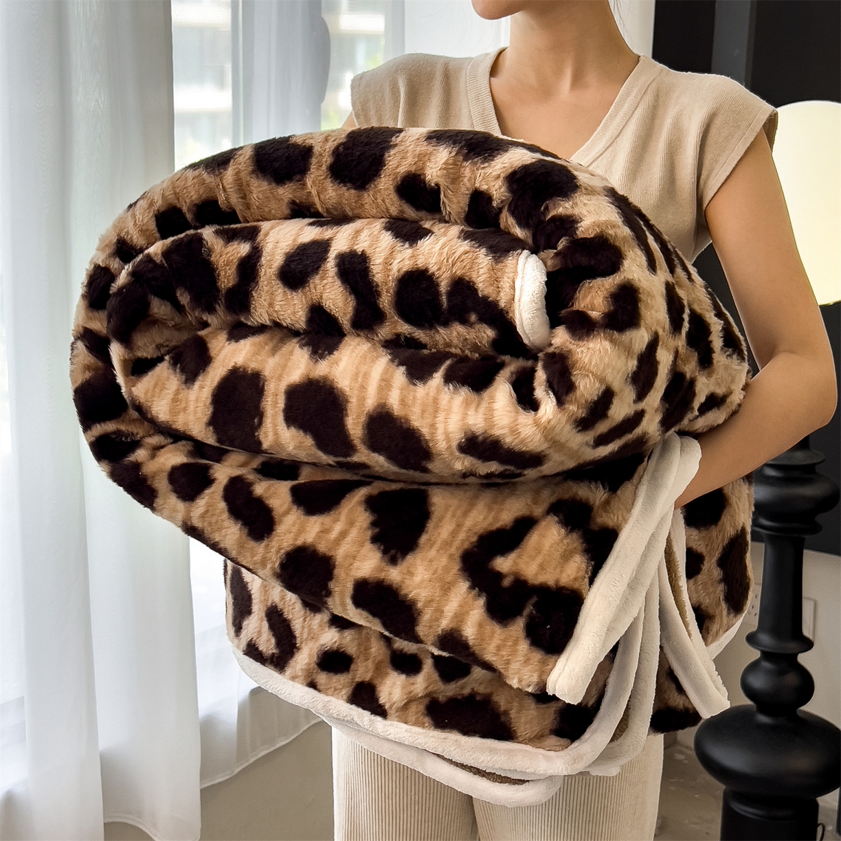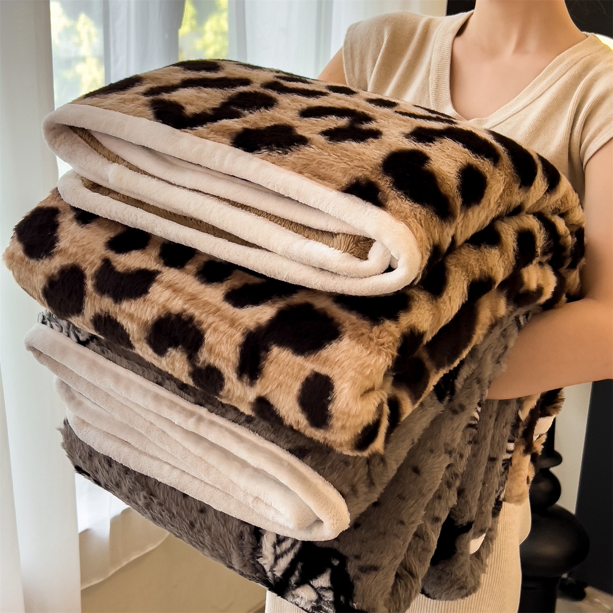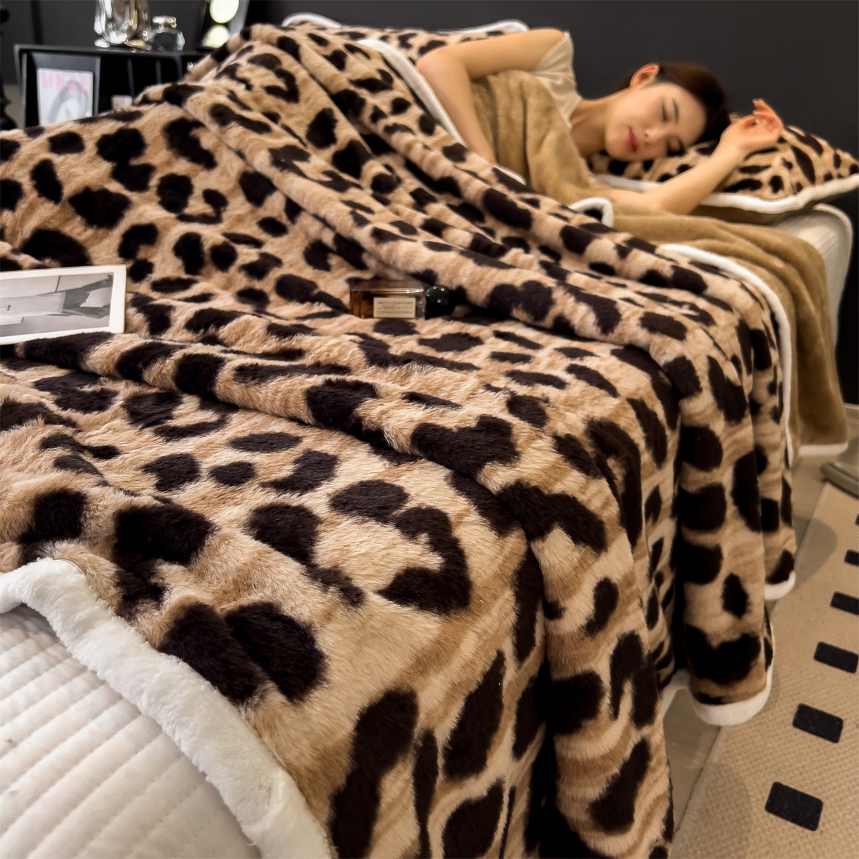 - - 2024新款a类双面兔毛印花毛毯 午睡毯 盖毯