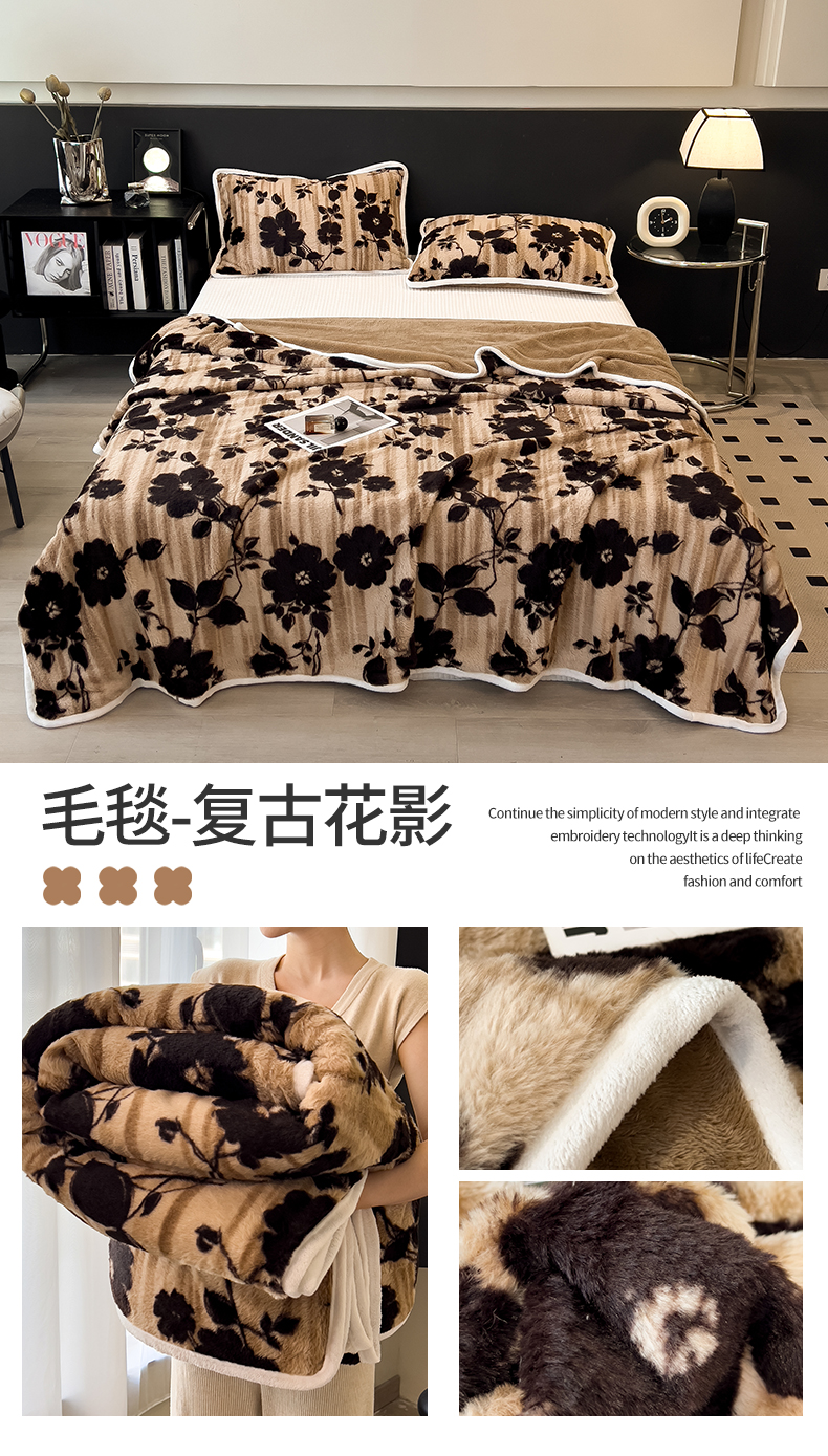 - - 2022新款舒棉绒阳离子毛毯四件套